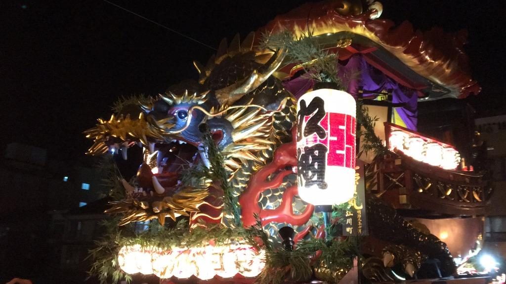 提灯の灯りに浮かぶ曳山の姿。澄んだ秋の夜空に響く囃子の音色。