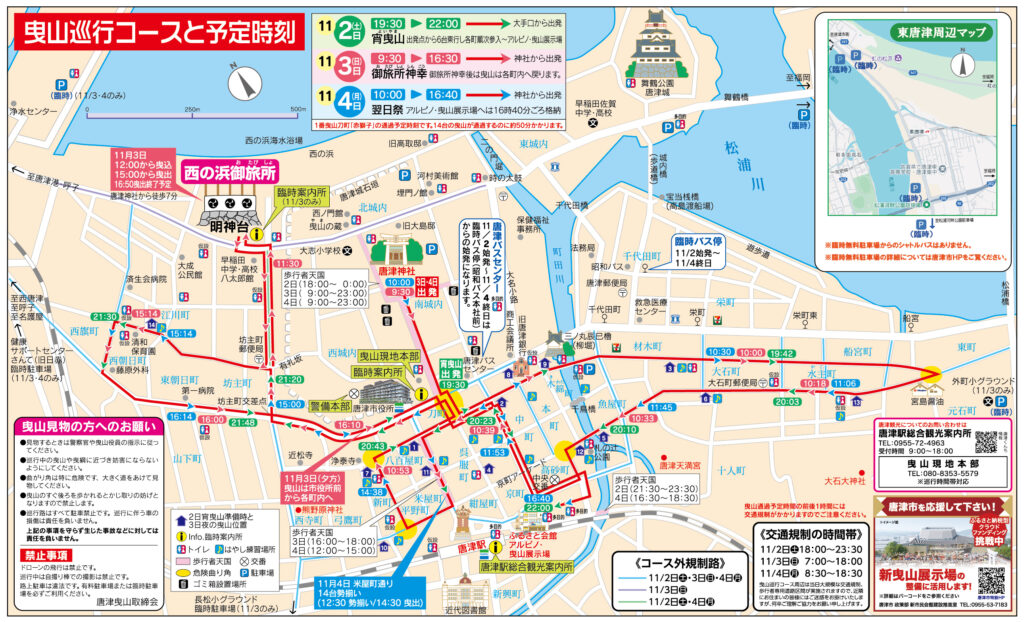 唐津くんちの曳山巡行に関しては、次のような注意事項があります。(唐津市ホームページより)